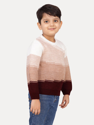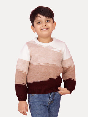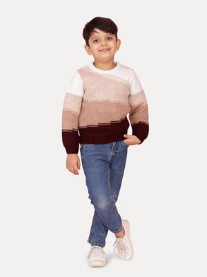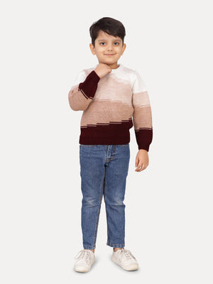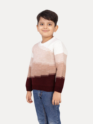 Keep your little one cozy and stylish with this color block pullover sweater featuring an abstract gradient design. The sophisticated blend of white, oatmeal, beige, and wine shades creates a modern and versatile look that's perfect for any occasion. The relaxed fit and ribbed trims add flexibility, making it great for both playtime and casual outings.