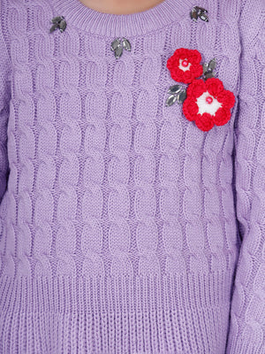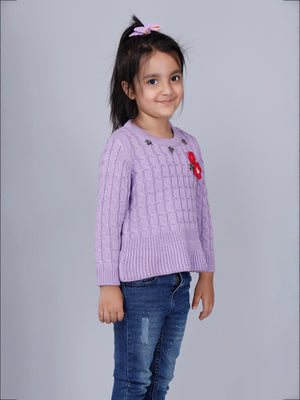 Add a touch of whimsy to your little one's wardrobe with this adorable cardigan, beautifully embellished with hand-embroidered crochet balls and flowers. The soft, cozy fabric ensures warmth and comfort during chilly days, while the intricate details provide a playful and charming look. Perfect for both casual wear and special occasions, this pullover combines classic cable knit styling with unique handcrafted elements, making it a standout piece in your child's collection.