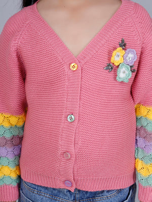 Keep your little one cozy and stylish with this adorable pointelle front closure cardigan. Featuring a soft and charming color block design in pink, this cardigan adds a touch of elegance to any outfit. The intricate pointelle knit detailing adds texture and visual interest, while the easy front button closure ensures convenience and comfort.