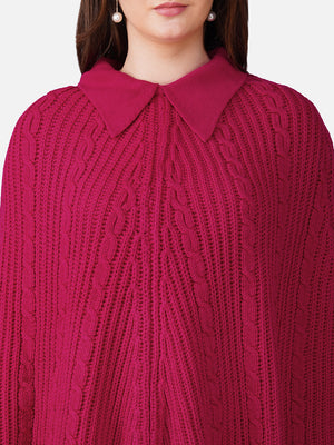 Stay stylish and warm in this chic fuchsia cable knit poncho. Designed with a classic shirt collar for a polished look, it features intricate cable knit patterns throughout for a touch...