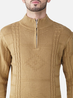 Stay cozy and stylish in this sophisticated turtleneck half-zip pullover, designed in a warm khaki hue. The abstract textured pattern adds a modern edge, making it perfect for both casual and semi-formal settings. Featuring a functional half-zip closure, this pullover offers versatile styling options—wear it zipped up for extra warmth or open for a more relaxed look.