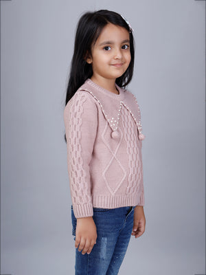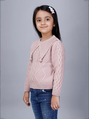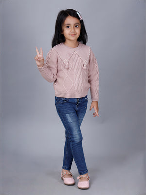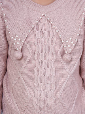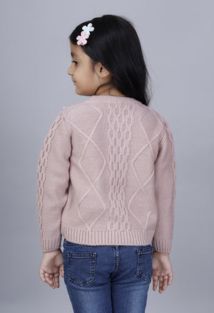 Give your little one a touch of elegance and warmth with this charming cable knit pullover. Featuring delicate knitted frills at the cuffs and hem, this sweater adds a whimsical, playful vibe to any outfit. The rich onion pink color combined with the classic cable knit pattern makes it perfect for chilly days, providing both style and comfort.