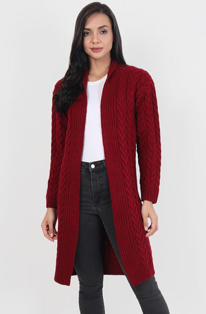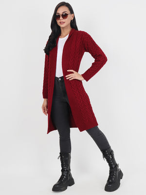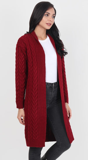 Maroon Knitted Woolen Front Open Sweater