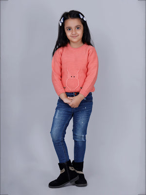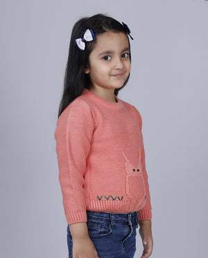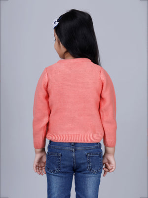 Give your little one a touch of elegance and warmth with this charming cable knit pullover. Featuring delicate knitted frills at the cuffs and hem, this sweater adds a whimsical, playful vibe to any outfit. The rich coral color combined with the classic cable knit pattern makes it perfect for chilly days, providing both style and comfort.