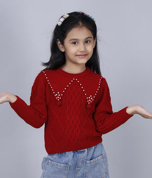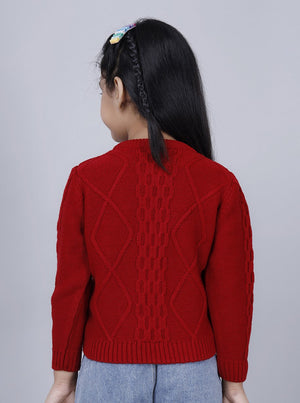 Give your little one a touch of elegance and warmth with this charming cable knit pullover. Featuring delicate knitted frills at the cuffs and hem, this sweater adds a whimsical, playful vibe to any outfit. The rich aqua color combined with the classic cable knit pattern makes it perfect for chilly days, providing both style and comfort.