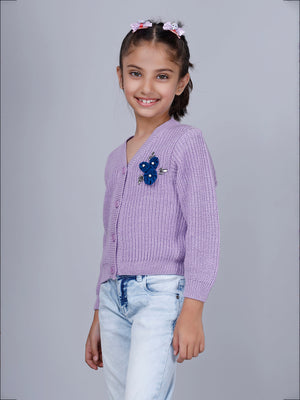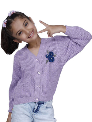 Add a touch of whimsy to your little one's wardrobe with this adorable cardigan, beautifully embellished with hand-embroidered crochet balls and flowers. The soft, cozy fabric ensures warmth and comfort during chilly days, while the intricate details provide a playful and charming look. Perfect for both casual wear and special occasions, this pullover combines classic cable knit styling with unique handcrafted elements, making it a standout piece in your child's collection.