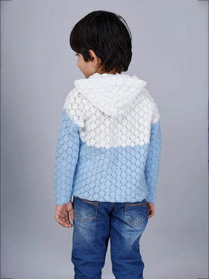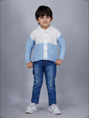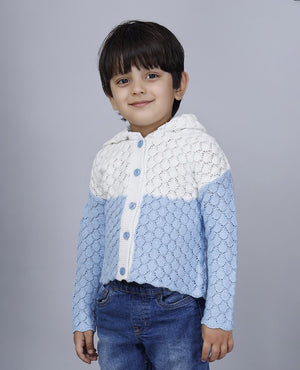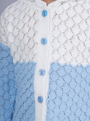 Keep your little one cozy and stylish with this adorable sky blue knitted cardigan. Designed with a charming dual-tone pattern, it blends elegance with everyday comfort. The delicate scallop-knit texture adds a unique touch, while the front button closure ensures easy wear. Made from soft, breathable fabric, this sweater is gentle on the skin and perfect for all-day wear.