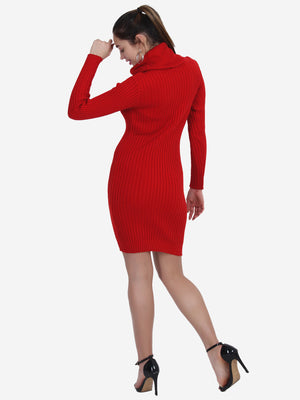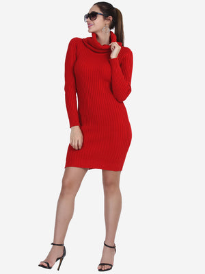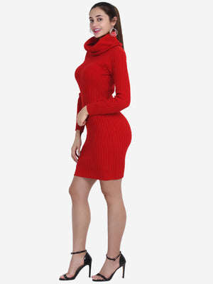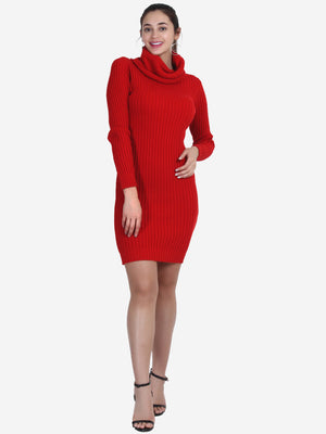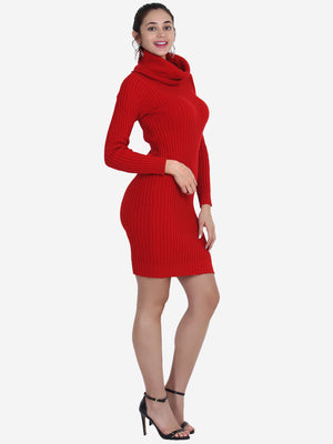 Solid Pure Cotton Cowl Neck Jumper Dress