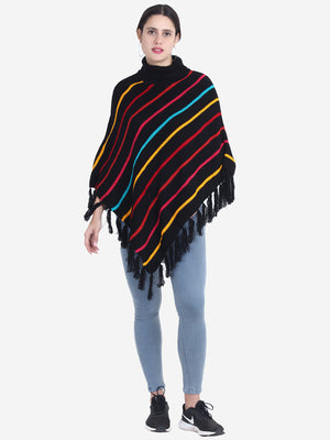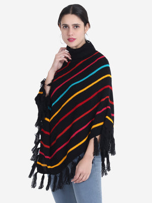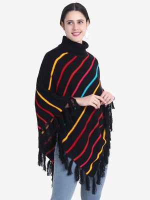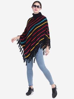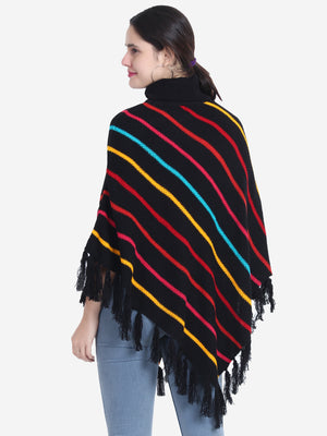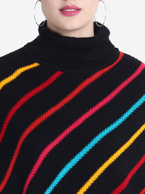 Striped Turtle Neck Poncho