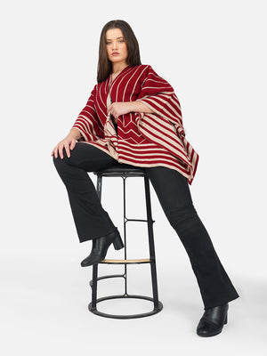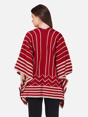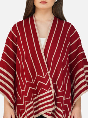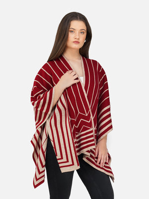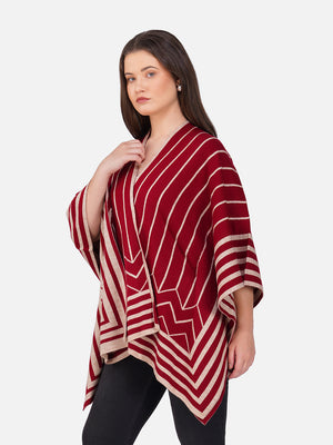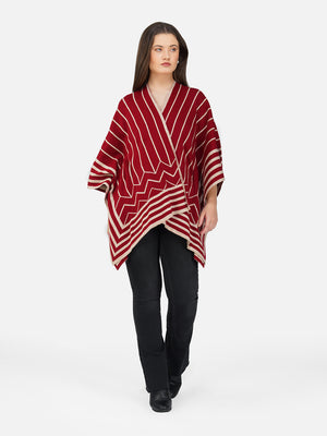 Unleash your bold side with The Chaos – a statement cape that lives up to its name. Featuring an eclectic mix of abstract zig-zag patterns and dynamic stripes, this eye-catching piece comes in a striking red and white palette. The fluid silhouette drapes effortlessly, making it a standout layering essential for those who love artistic flair and fearless fashion. Perfect for adding a contemporary edge to both casual and dressy ensembles.