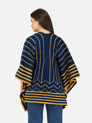 Unleash your bold side with The Chaos – a statement cape that lives up to its name. Featuring an eclectic mix of abstract zig-zag patterns and dynamic stripes, this eye-catching piece...