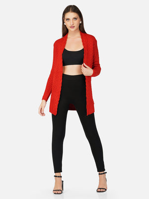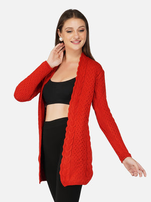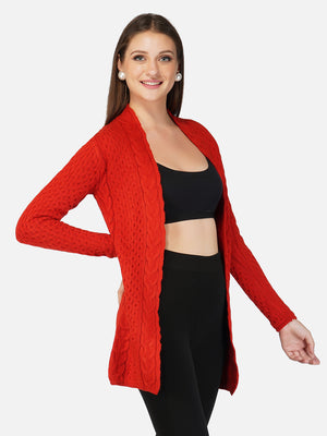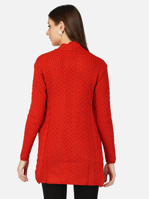 Women Rust Colour Chunky Cable Knit Shrug