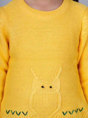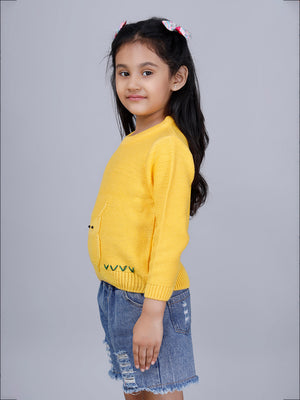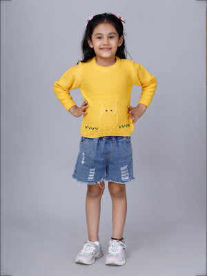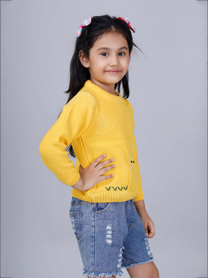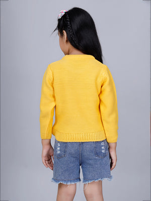 Give your little one a touch of elegance and warmth with this charming cable knit pullover. Featuring delicate knitted frills at the cuffs and hem, this sweater adds a whimsical, playful vibe to any outfit. The rich yellow color combined with the classic cable knit pattern makes it perfect for chilly days, providing both style and comfort.